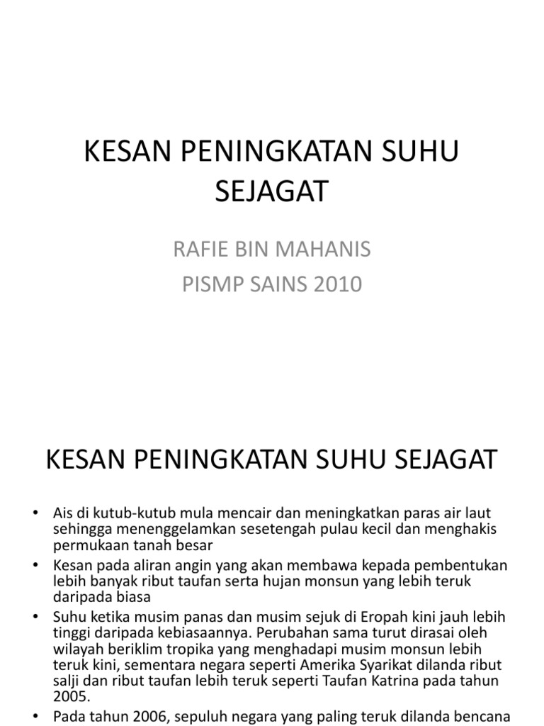 Kesan Peningkatan Suhu Sejagat Pdf
