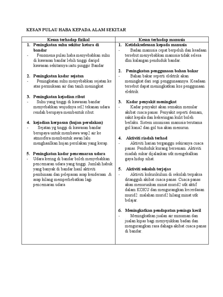 Kesan Pulau Haba Kepada Alam Sekitar Pdf